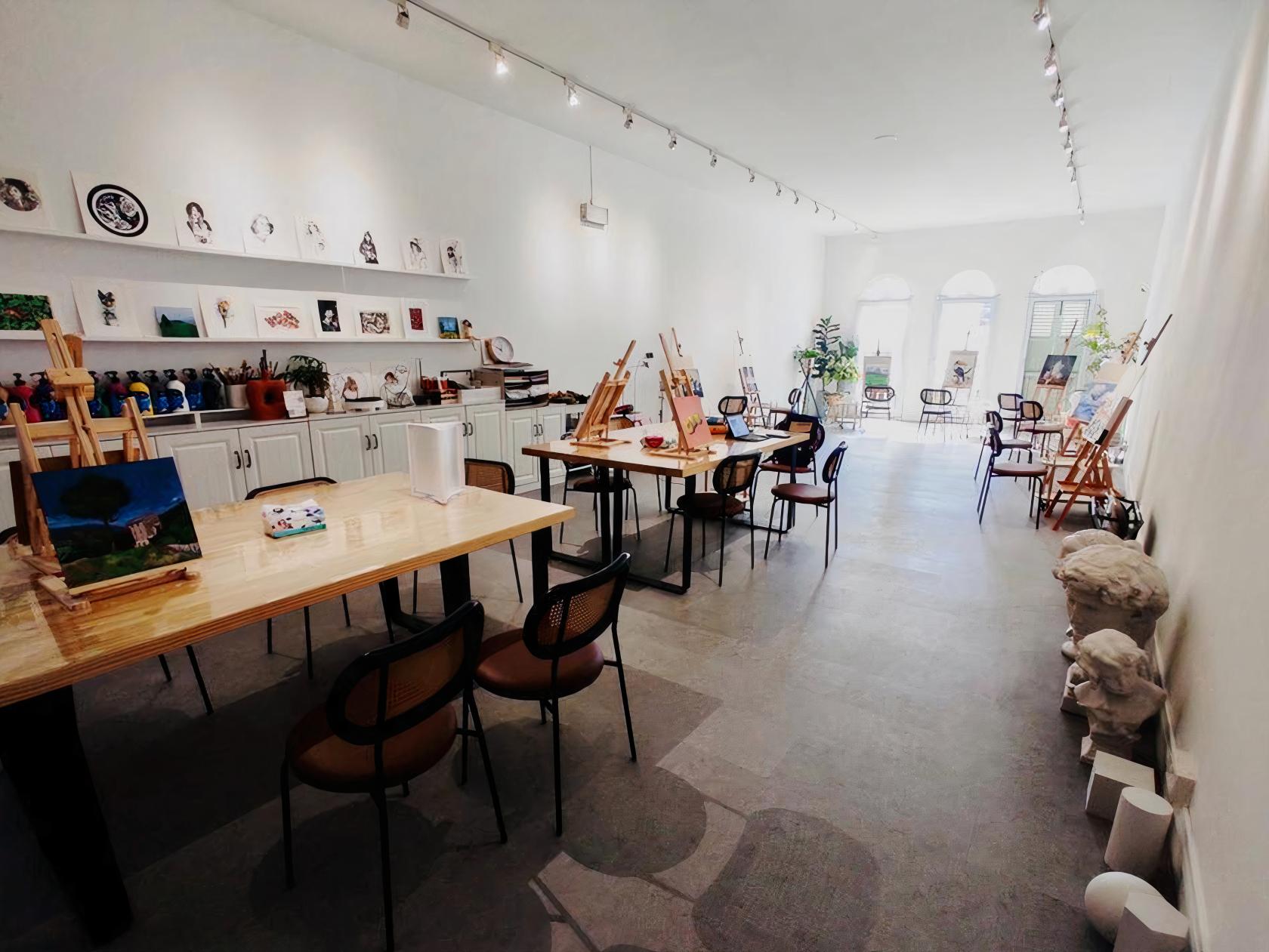 CocoArt at Beach Road is a spacious art studio spread across two floors, designed to accommodate up to 60 people. The studio supports a range of creative activities, including pottery wheel throwing, slime-making, and air-dry clay sculpting.