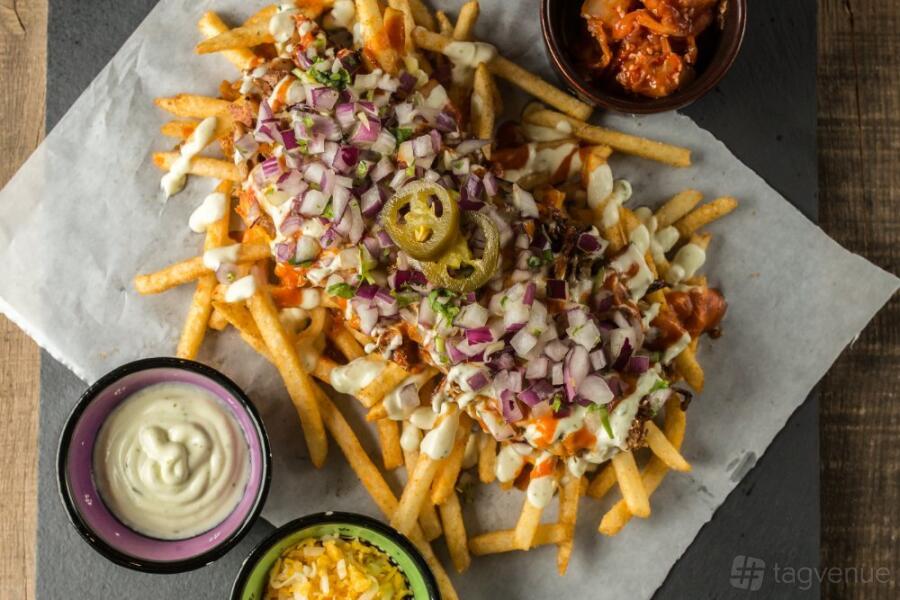 Founded by Korean-Americans, Vatos - City House blends Korean and Mexican flavors. Inspired by LA street tacos and Korean cooking, they offer dishes like Kimchi Carnitas Fries and Galbi Tacos.