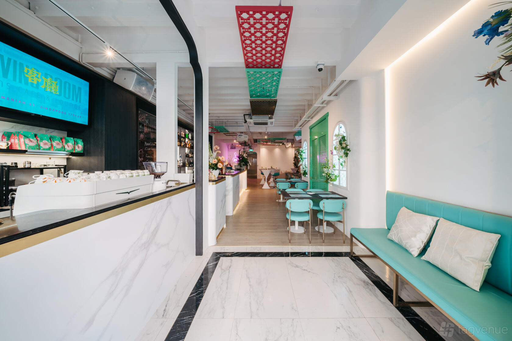 The interior, adorned with floral decor and neon lights, showcases a striking graffiti art piece by renowned Singaporean artist Theseus Chan. Suns Living Room is fully equipped with projector displays, karaoke, a stage, and flexible seating arrangements, making it perfect for a wide range of events. Whether it's team-building, kids' birthday parties, or an energetic night of singing and drinking, the space comfortably accommodates 40 seated and up to 60 standing guests.