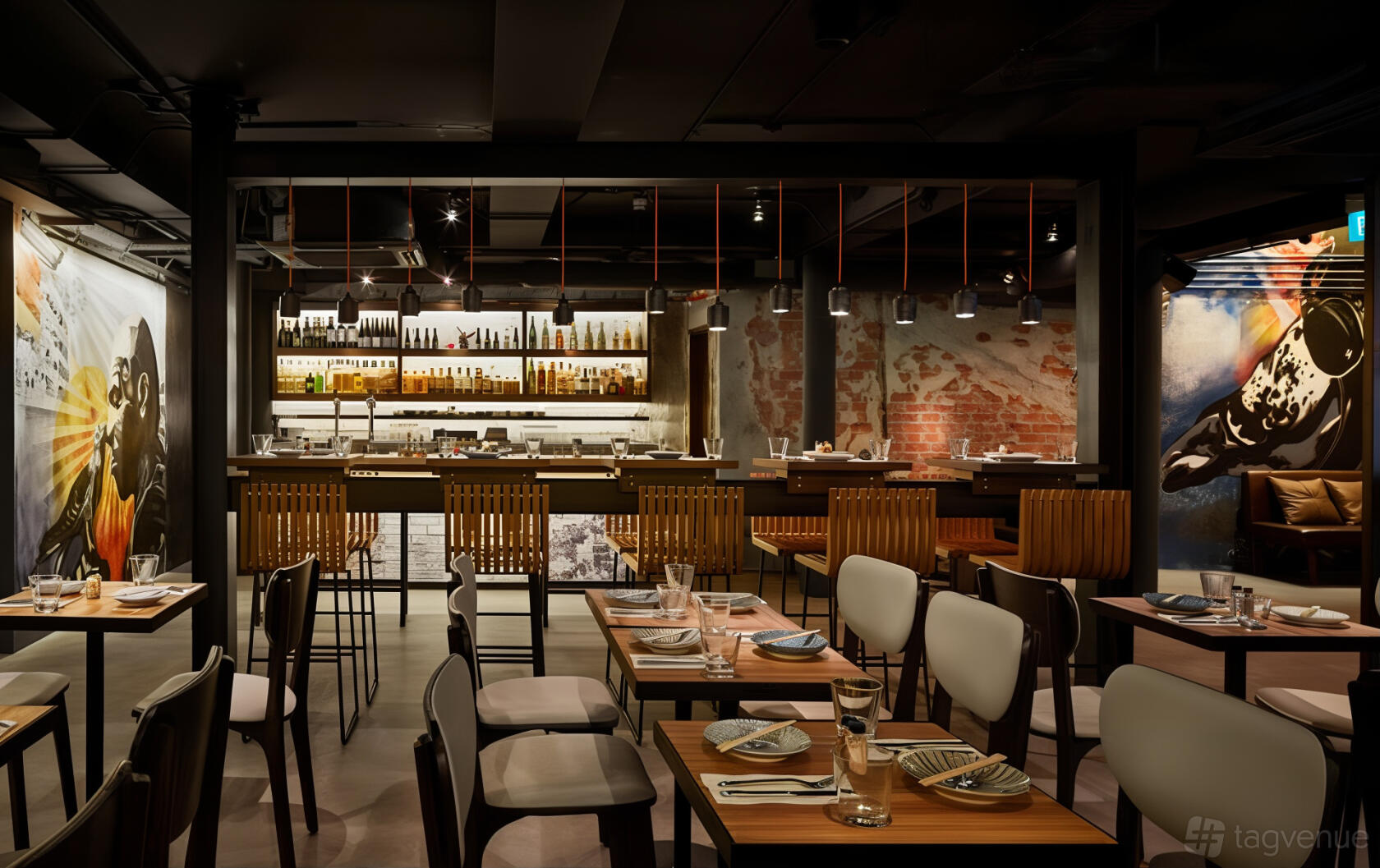 The decor is stylish and eye-catching, with large graffiti art giving the space a unique look. The tables are neatly set. It’s a great spot for anyone who enjoys a trendy, upbeat atmosphere with good food and drinks, ideal for both casual dinners and bigger events.