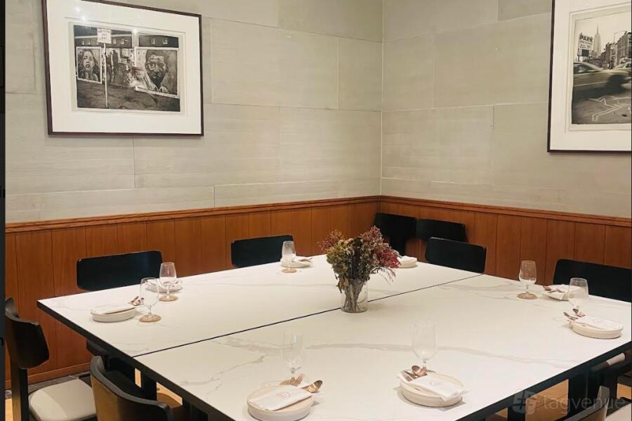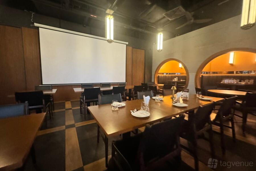As a semi-private indoor space, this area is very popular with guests. For gatherings of up to 35 people, we can set it up with a combination of cocktail and seating tables, making it ideal for relatively private, small to medium-sized cocktail parties.