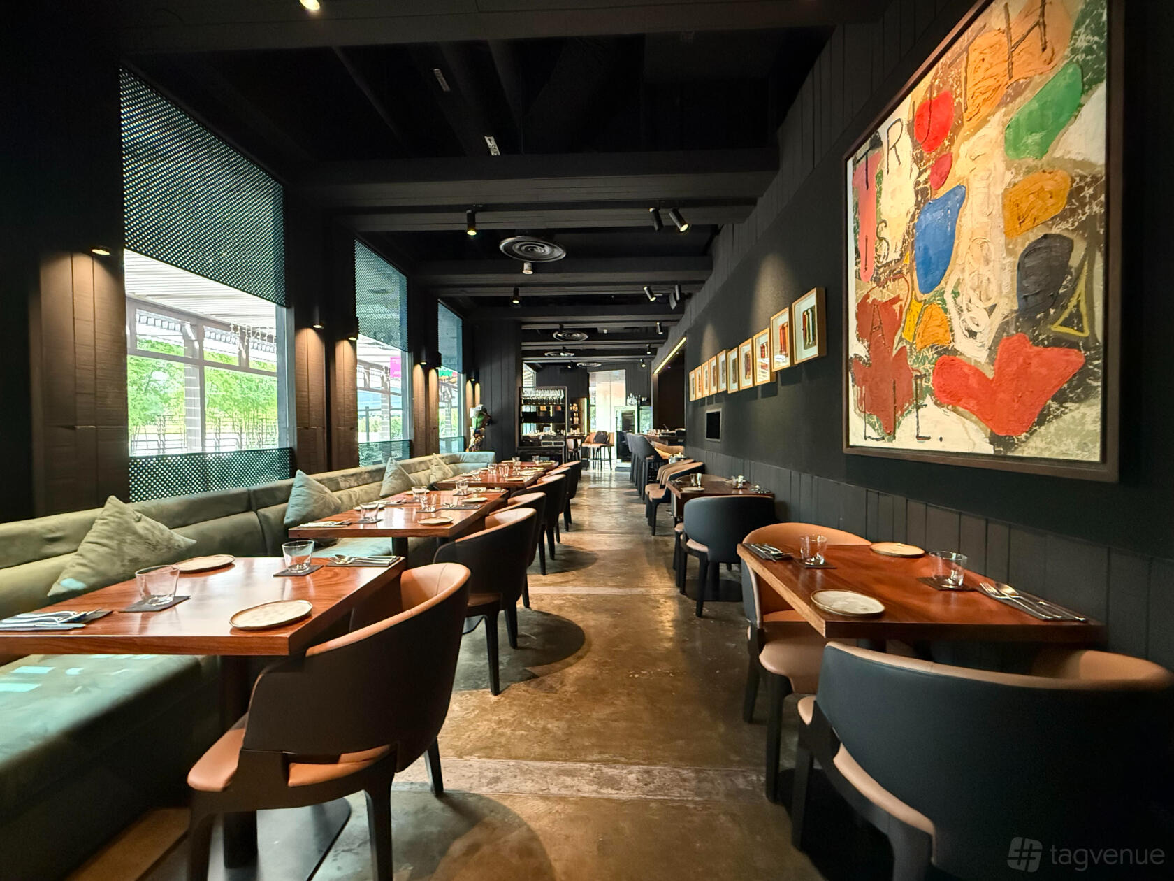 The intimate 31-seat space offers a warm and inviting atmosphere. A curated selection of contemporary art by renowned Filipino artists Jayson Oliveria and Nilo Ilarde add a vibrant touch, making it the perfect place for a memorable night out.