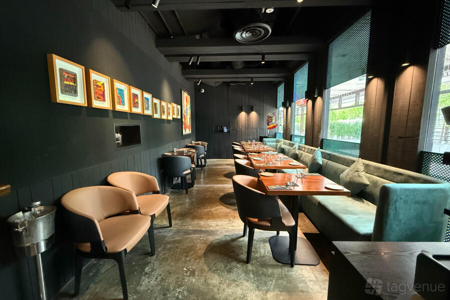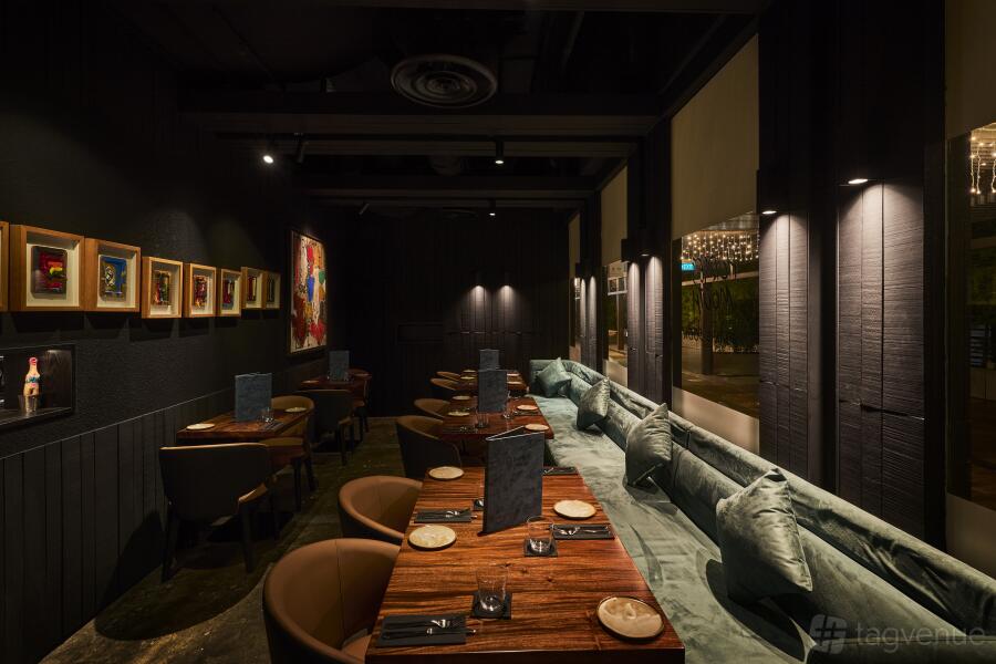 The intimate 31-seat space offers a warm and inviting atmosphere. A curated selection of contemporary art by renowned Filipino artists Jayson Oliveria and Nilo Ilarde add a vibrant touch, making it the perfect place for a memorable night out.