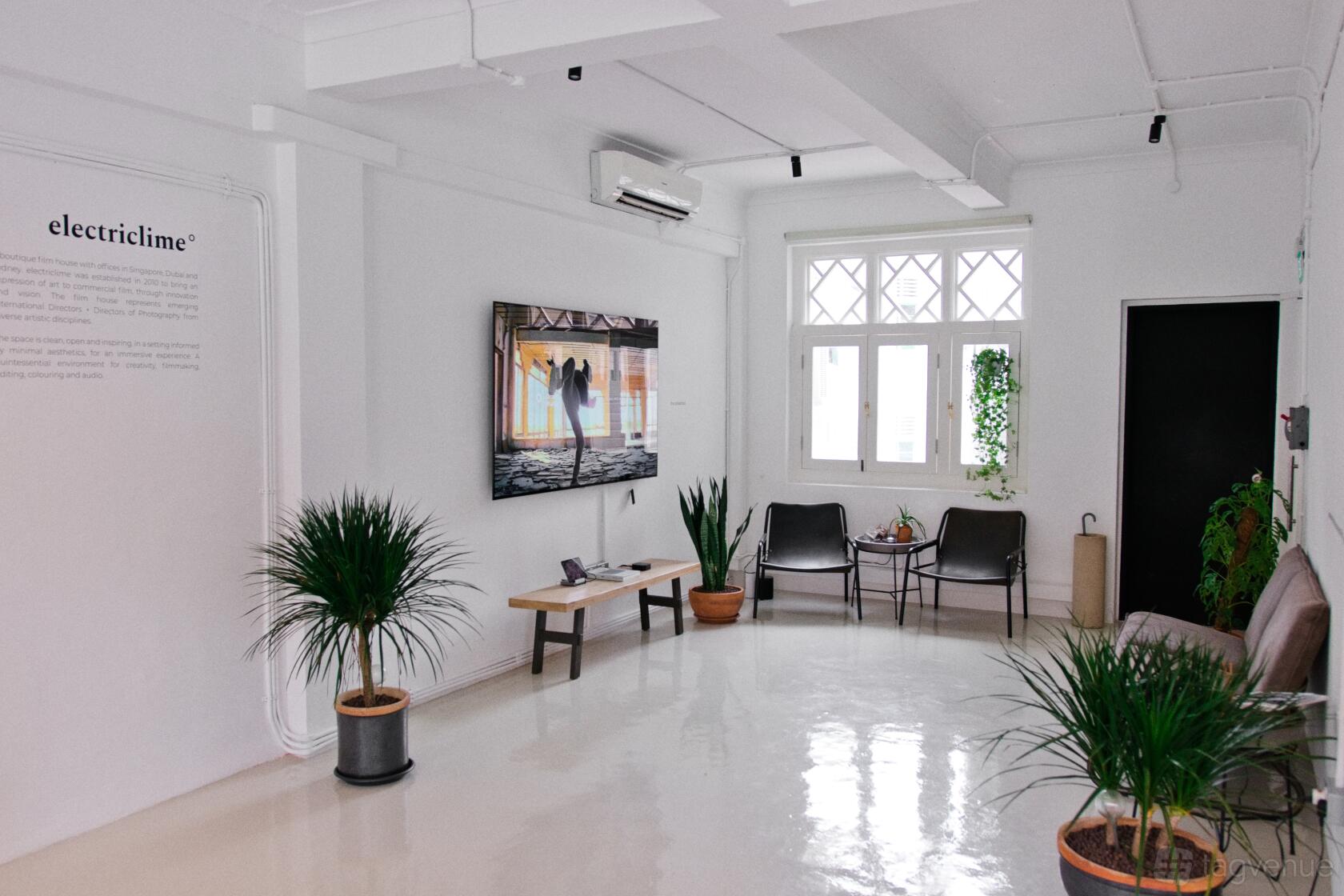 Large bright and open co-working space with edit suite capabilities and multiple areas for meetings and presentations. Sound-Proofed.