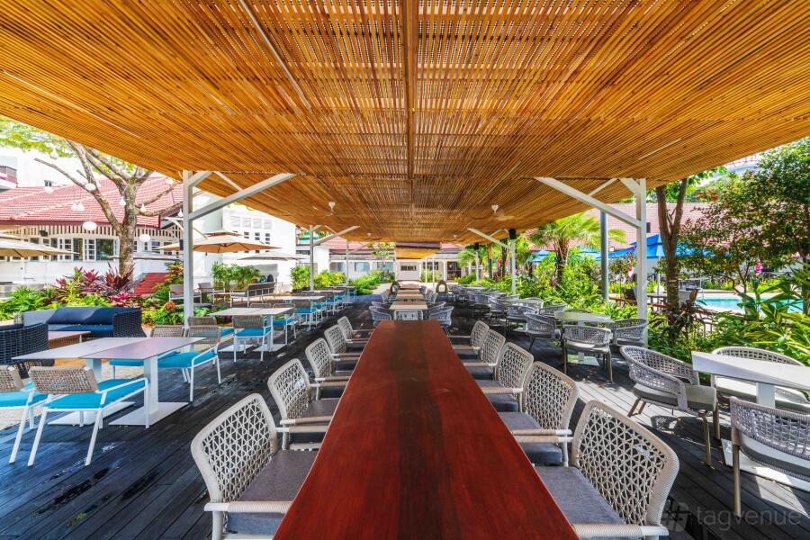 Set along Singapore’s northeastern coast, Canopy Changi Village offers a relaxed, seaside setting perfect for both casual outings and special events. With a private sand area, pet-friendly outdoor dining, and a stage for live performances, it delivers a distinctive coastal experience. Overlooking the calm waters of Changi Point, the venue also features an indoor dining space within a beautifully preserved heritage building—an inviting choice for corporate retreats, weddings, family gatherings, and celebrations.