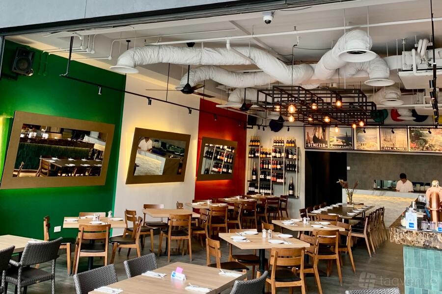Compared to outdoor, the dining area keeps the casualty while being a little more classy. Our bar showcases various drinks, and posters on the walls, and the decoration says so.