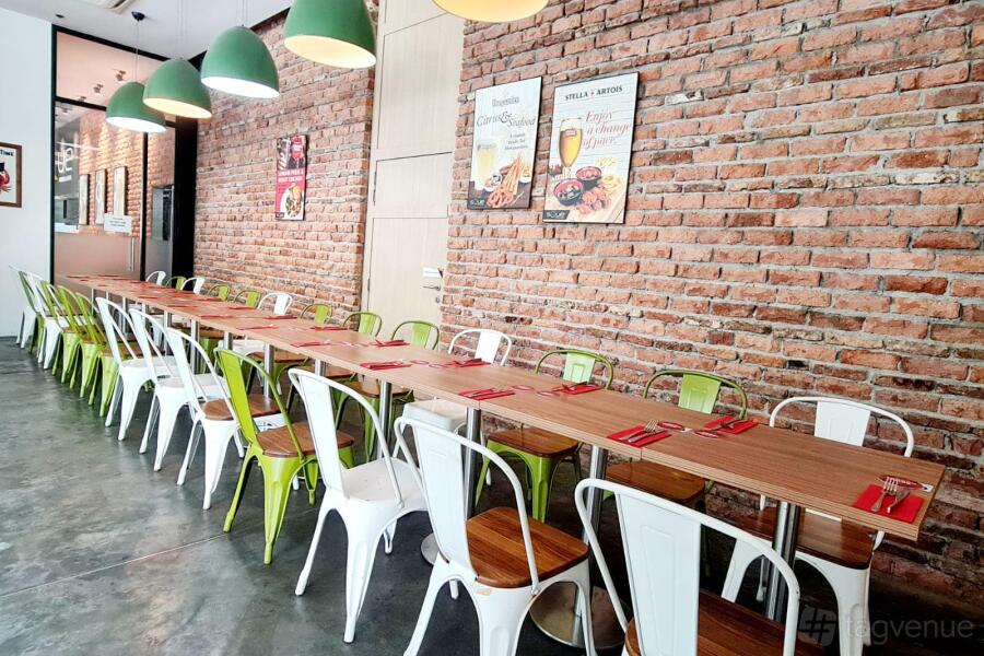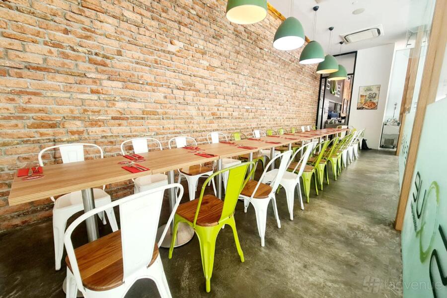 This space can accommodate up to 50 guests. The seating layout is movable, so you can adjust it to your needs. It is fit for seated dinners and corporate receptions.
