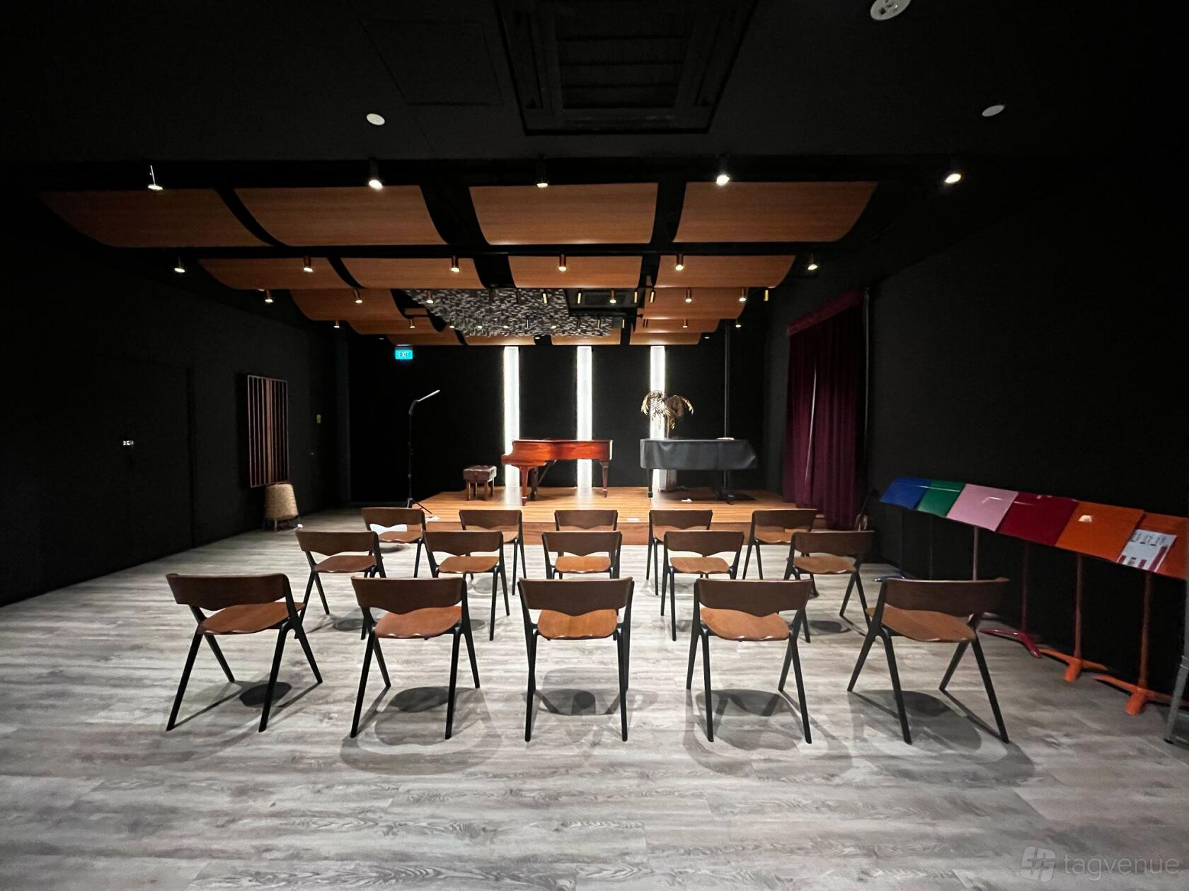 The hall includes a raised wooden stage and comfortable seating, offering an inviting ambiance for both performers and audiences. If you're hosting a concert, workshop, or special gathering, our recital hall delivers the most adequate and sophisticated atmosphere.