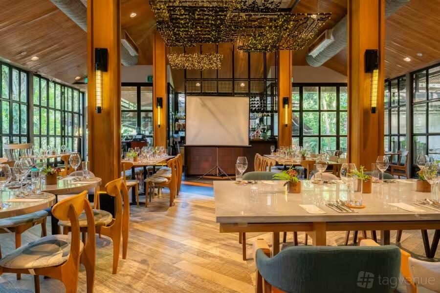 Our outdoor deck dining space offers an intimate setting. It is fit for private celebrations, cozy dinner parties, or exclusive social events. It has a capacity of 40 guests.