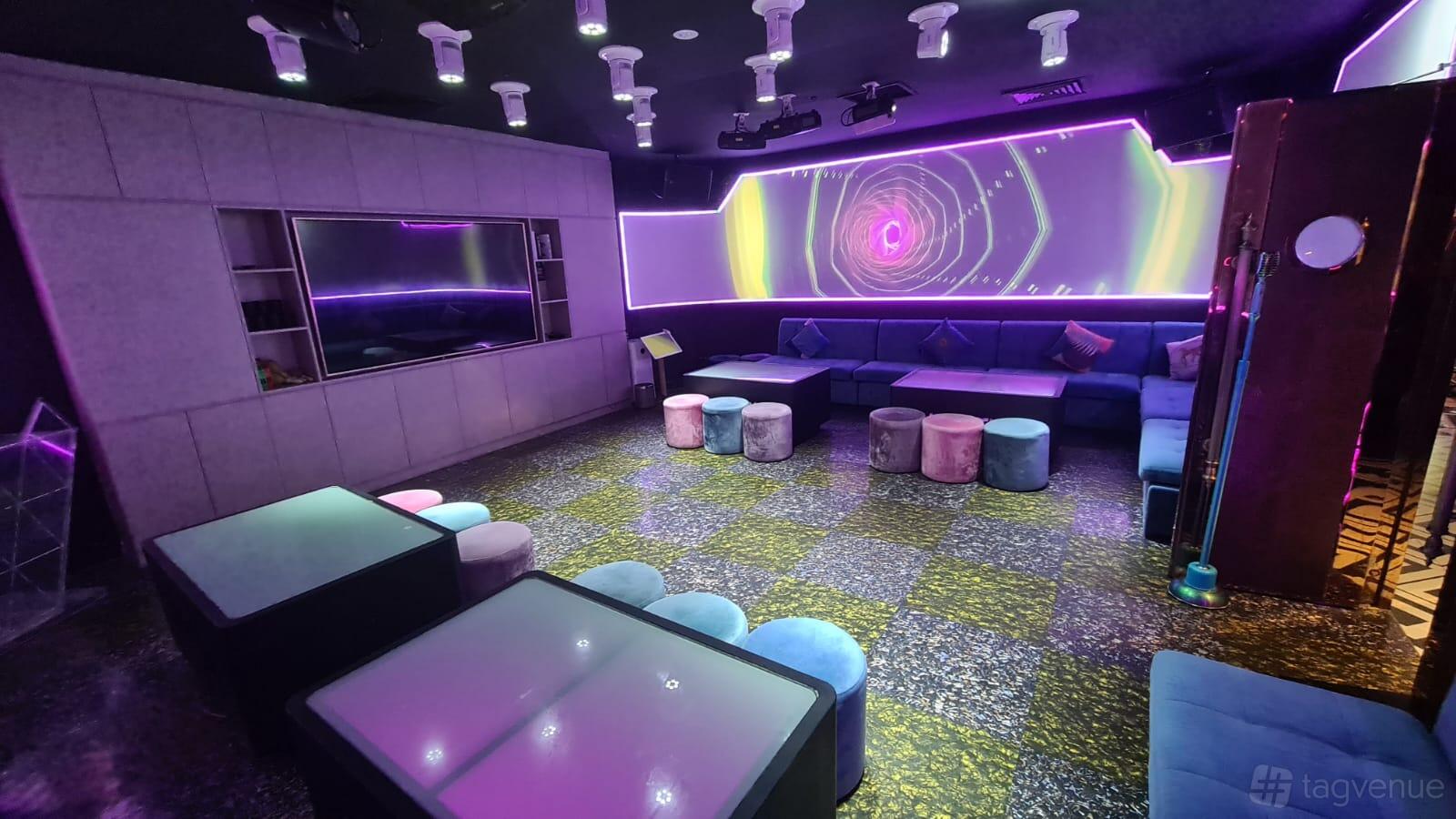 The VIP room is fit for 30 guests. There are couches, tables, a billard table, and an AV set. It's a great choice for smaller karaoke parties in a more intimate setting.
