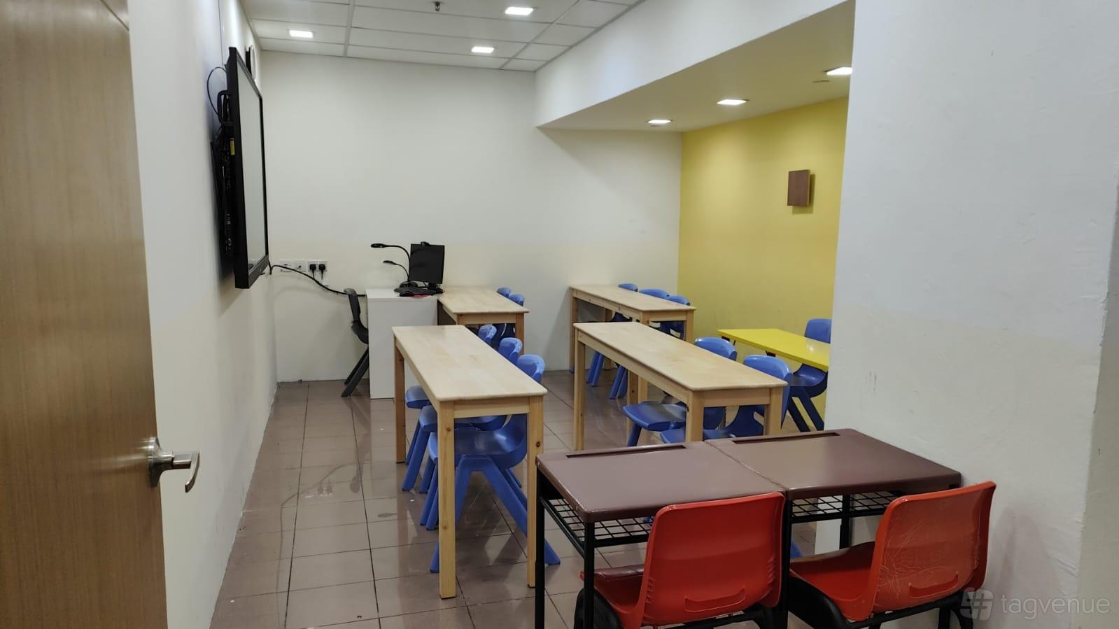 Set in a quiet environment, the space supports concentration and group interaction without unnecessary distractions, making it well-suited for tutoring, workshops, or planning meetings.