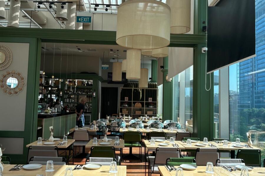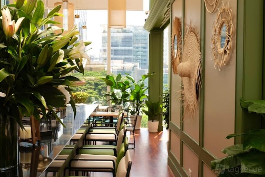 We have a bright, open space with lots of plants and modern design, including big glass windows and natural wood. There are different dining areas, including one outside. Guests can easily park at Suntec, and the venue is fully wheelchair-friendly. We also offer AV equipment, sound systems, and menus that can be customized.