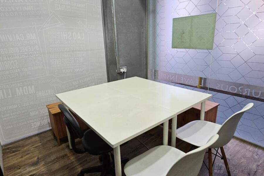 Bishan classroom with A/C, Wi-Fi, whiteboard, furnishings, and restroom access. Designed to support educational sessions, collaborative work, or interactive activities for groups of 10 individuals.