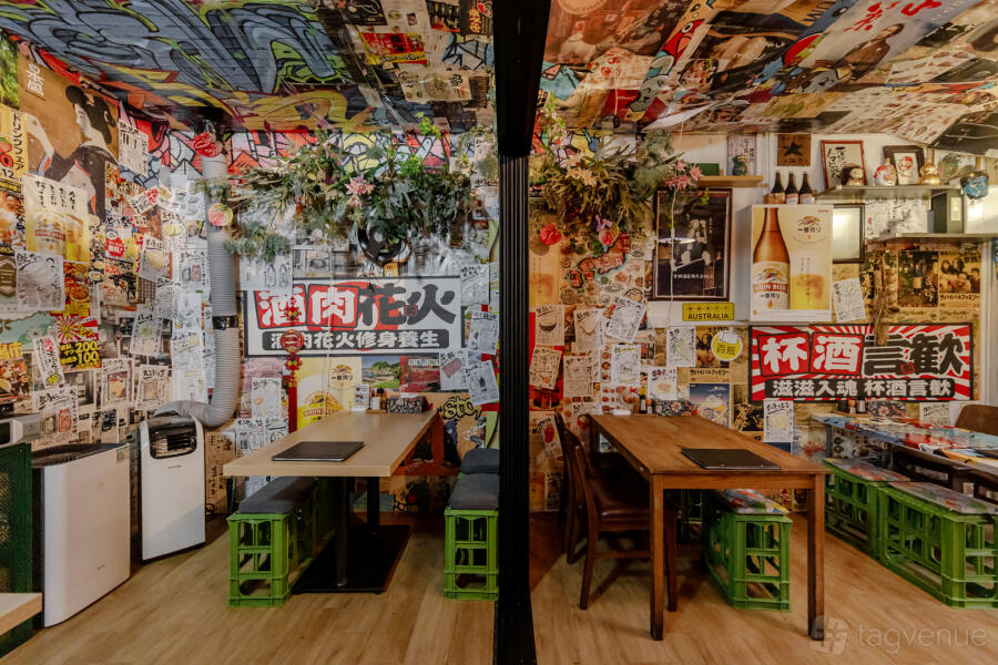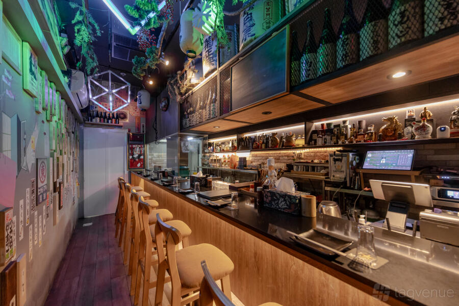 With wooden tables and crate-style stools, Unit 1 offers a comfortable izakaya environment for up to 40 guests. An authentic dining experience is created by the space's traditional Japanese décor.