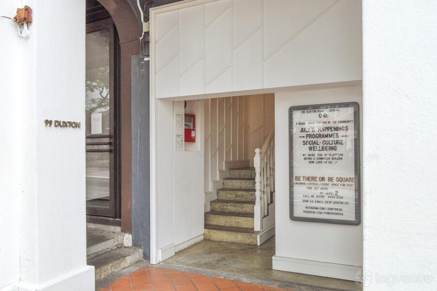 the Co. at Duxton is located at 99 Duxton Road, in the Tanjong Pagar district of Singapore. The nearest metro station is Outram Park MRT Station.