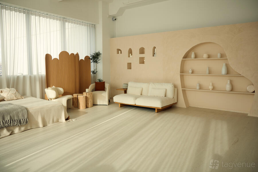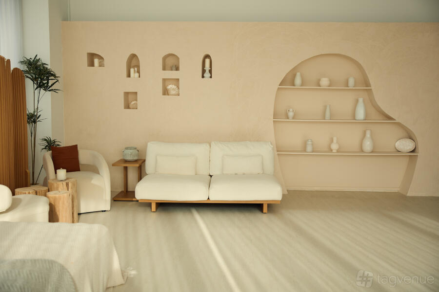 The venue is bathed in bright natural and artificial lighting, making it ideal for activities that require a well-lit environment. Its minimalist design gives guests the freedom to customize and style the space according to their needs.