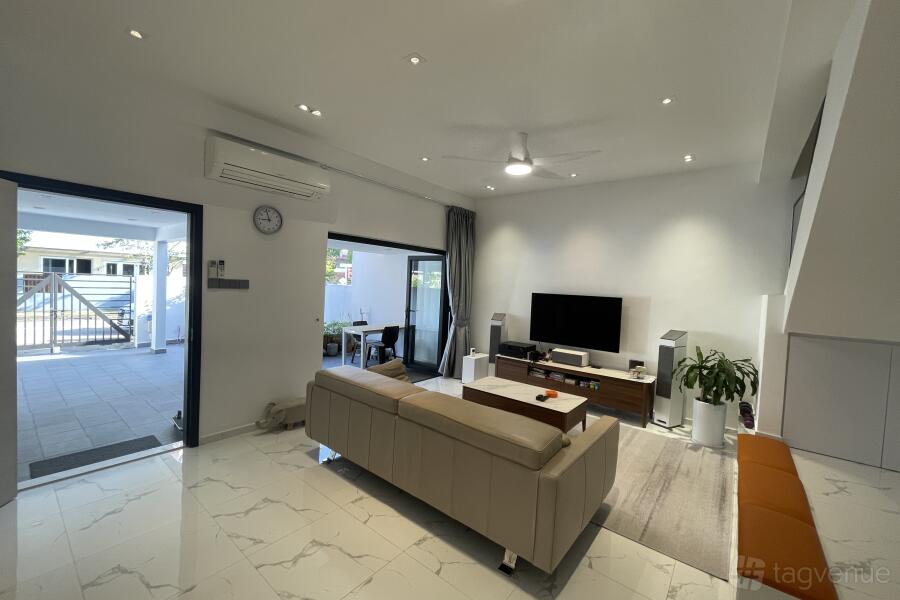 House is about 2000 square feet of built up areas including 3 bedrooms, 1 office. Located near Singapore Expo, 8 mins walk from MRT and shopping centre, it will be convenient and easy to set up for specialised filming with minimum hassle.