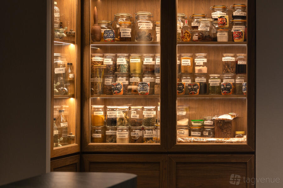 For starters, all our ingredients are freshly sourced from Tekka Market and its surroundings. And when you step into our bar, you’ll notice little details, like our welcoming aprons, sewn with leftover saree cloths from Little India or the rows of infusions and fermentations on our shelves, each with its own tale to tell, and the uncommon spirits we acquire only from India.