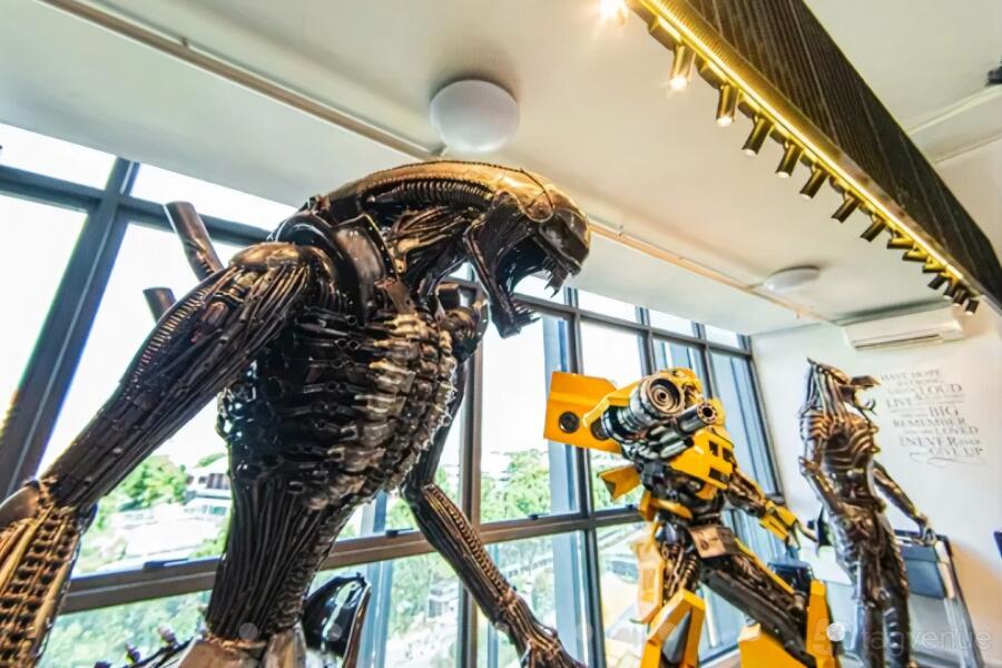 Our indoor gallery studio space is equipped to host workshops, meetings, solemnization ceremonies, and private events, complemented by beautifully crafted metal art sculptures. These intricate giant sculptures serve as perfect conversation starters for your guests. Additionally, your event can take advantage of our private pool and BBQ facilities to enhance the entertainment factor.