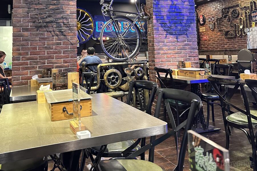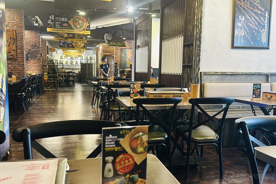 Architecturally, BBQ Box combines rustic charm with modern elements, featuring exposed brick walls, warm wooden furniture, and contemporary lighting that creates a cozy yet energetic atmosphere.
