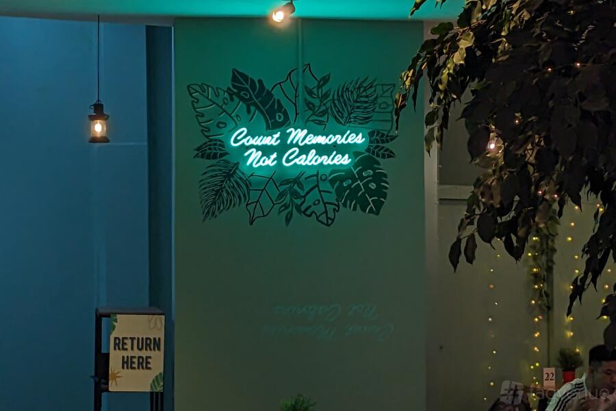 This café offers a refreshing retreat with its nature-themed ambiance and eco-friendly design. The interior is a blend of modern and rustic elements, featuring wood and greenery that evoke a sense of being in a tranquil forest.