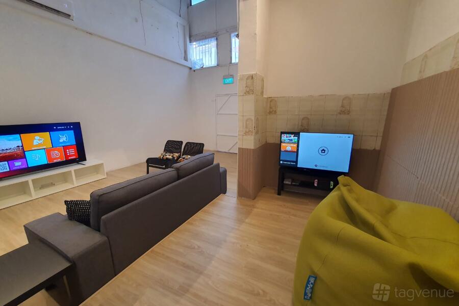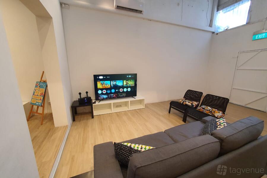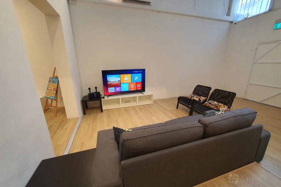 Facilities like projector for meeting or movies, KTV, fridge, table and chairs for classes, Nintendo Switch video games, cool and chilled furniture, board games, pool table. Flexible table and chairs arrangement.