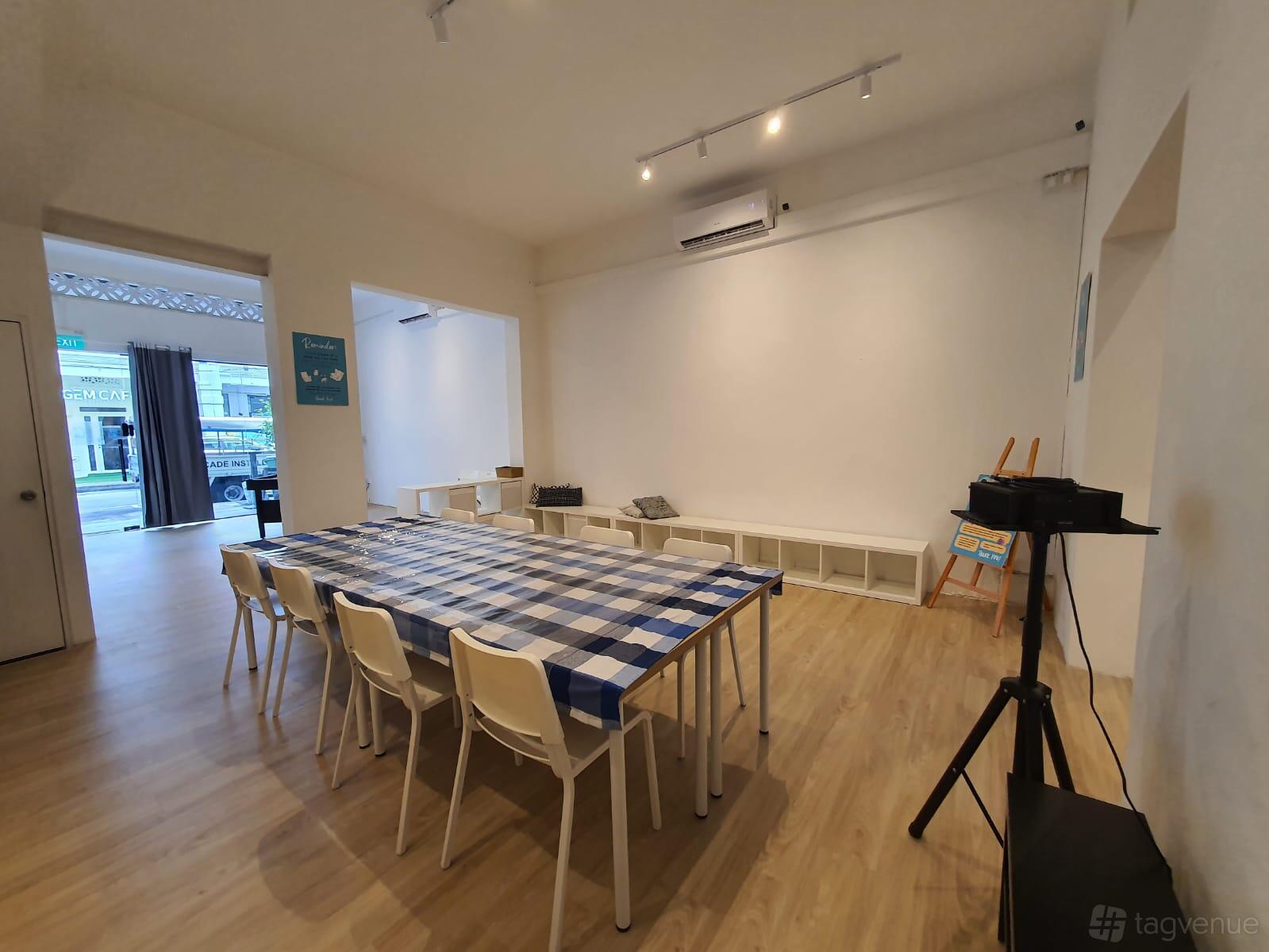 For all kind of private parties, company event, meeting, arts classes / exhibition, seminal and more. High ceiling and super spacious that can accommodate up to 55 people. Within the town area that is near Jalan Besah Hawker Centre and City Square Mall, Farrer Park MRT station.