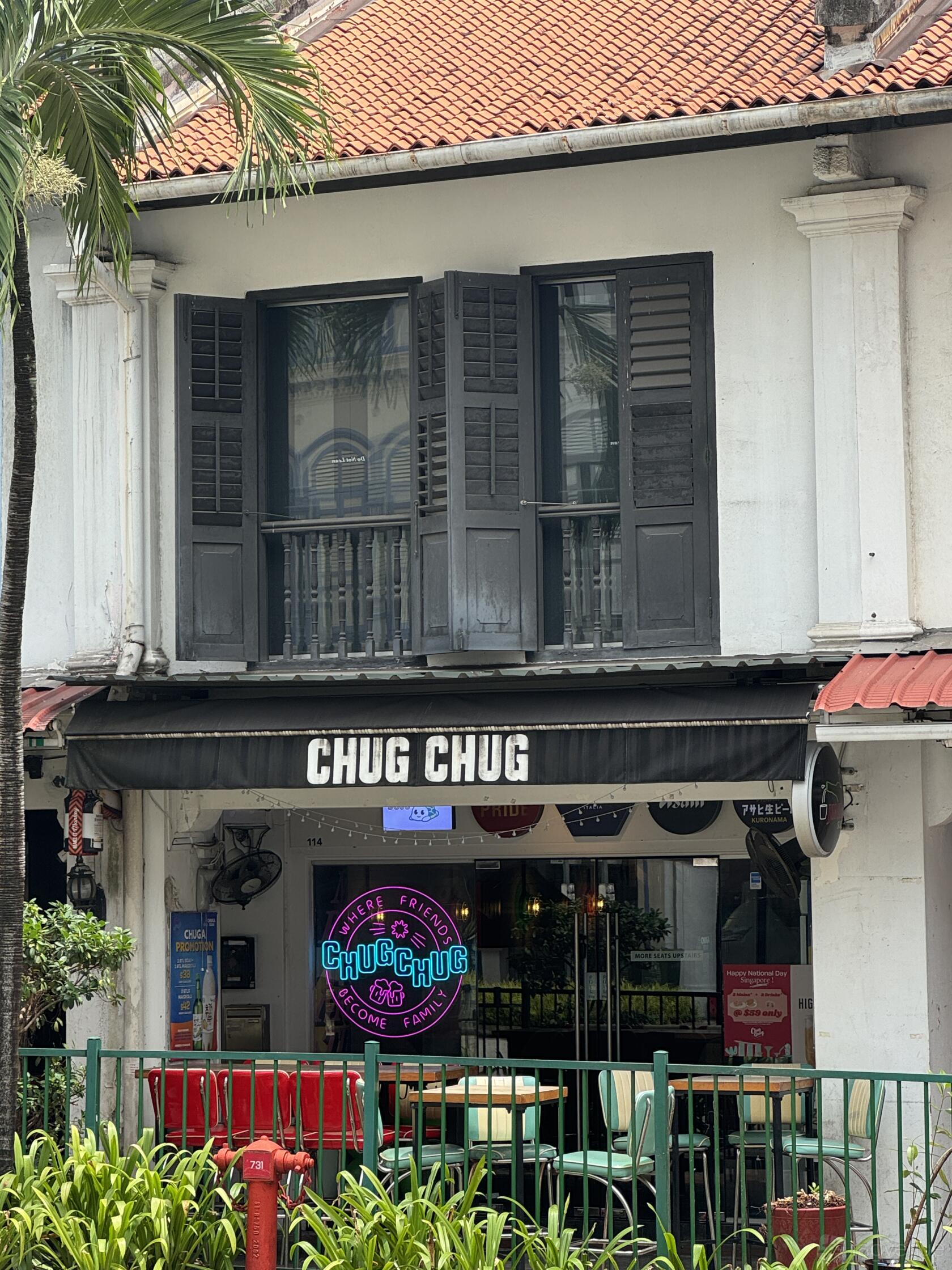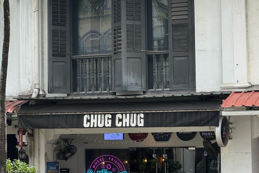 Chug Chug is located at 114 Tanjong Pagar Road, in the Tanjong Pagar district of Singapore. The nearest metro station is Tanjong Pagar MRT Station.