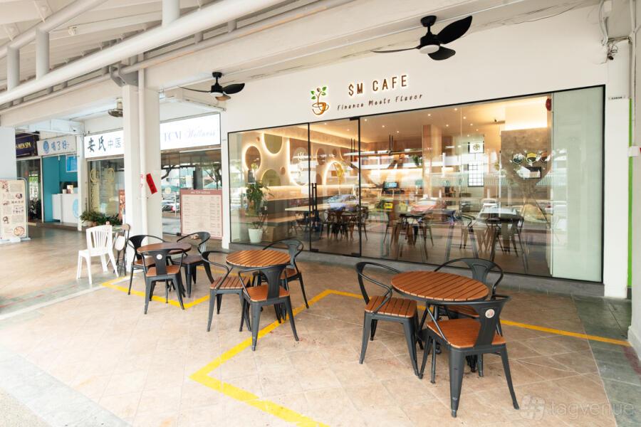 SM Cafe is located at 124 Hougang Avenue 1, in the Lorong Ah Soo district of Singapore.