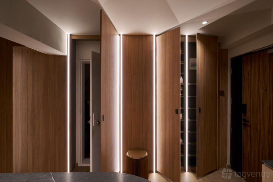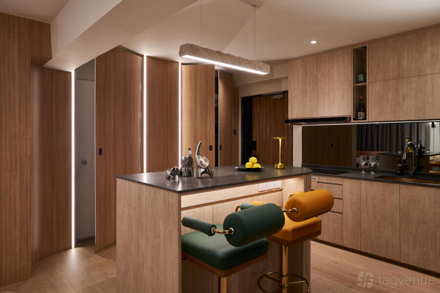 This space is primarily for photo/film/video shoots, and it features an open concept kitchen with a fixed island and 4 bar stools, a round yellow dining table that sits 6-8, curved ceiling corridor, wooden vibes with colour pops, a study room, and a guest room. The master bedroom is out of bounds. Furniture can be moved around, but please make sure it goes back to its original position after the shoots! Will also appreciate anyone in here to be careful and take care of things! After all, this is a home!