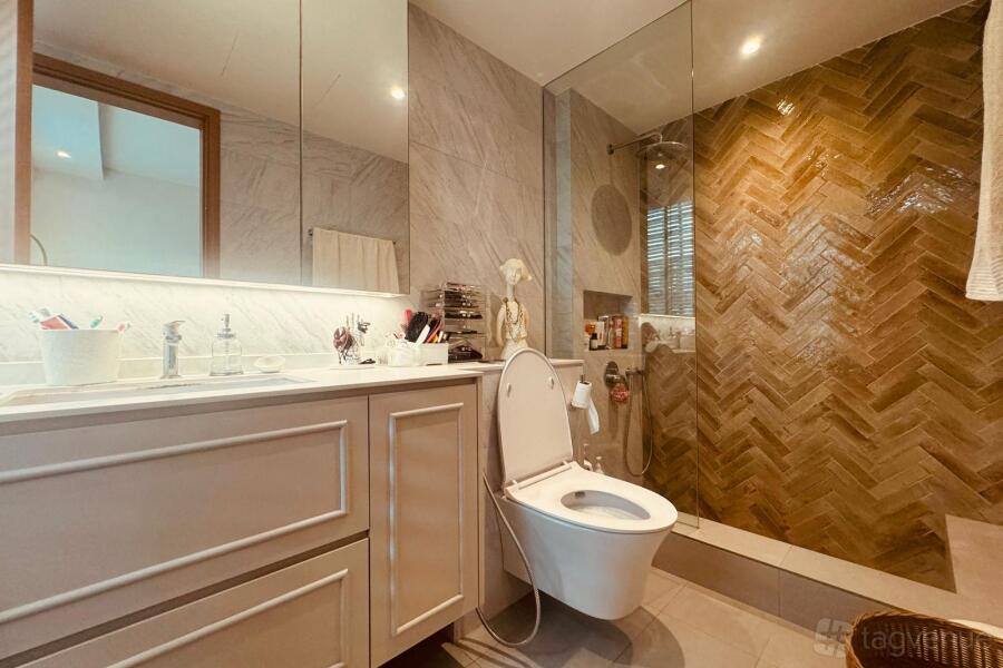 The living room is very spacious with 4-metre high ceilings, full of sunlight and it is equipped with a grand piano where those musical moments will be created. The kitchen has an open concept and it leads to the living area making it perfect for entertaining guests or having nice dinners.