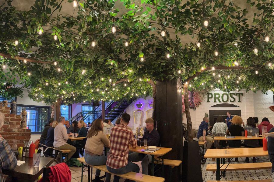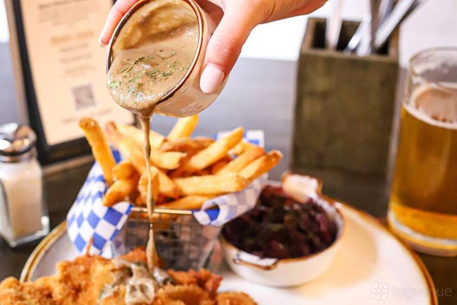 Explore a diverse menu featuring comfort foods and international dishes, perfectly paired with an extensive beer selection. Say "Prost!" and savor the flavors.