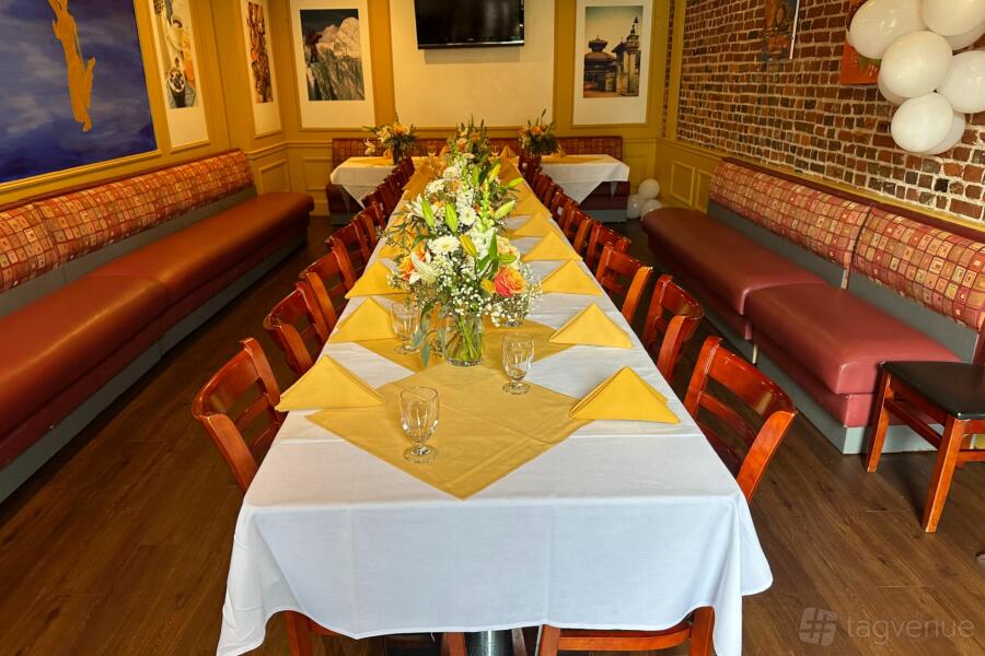 In addition to the main dining room, there is a smaller banquet area that can hold up to 45 people. This space is perfect for more intimate events, such as family gatherings, business meetings, or smaller celebrations. Both spaces are comfortable and flexible, allowing guests to create the perfect setup for their event.