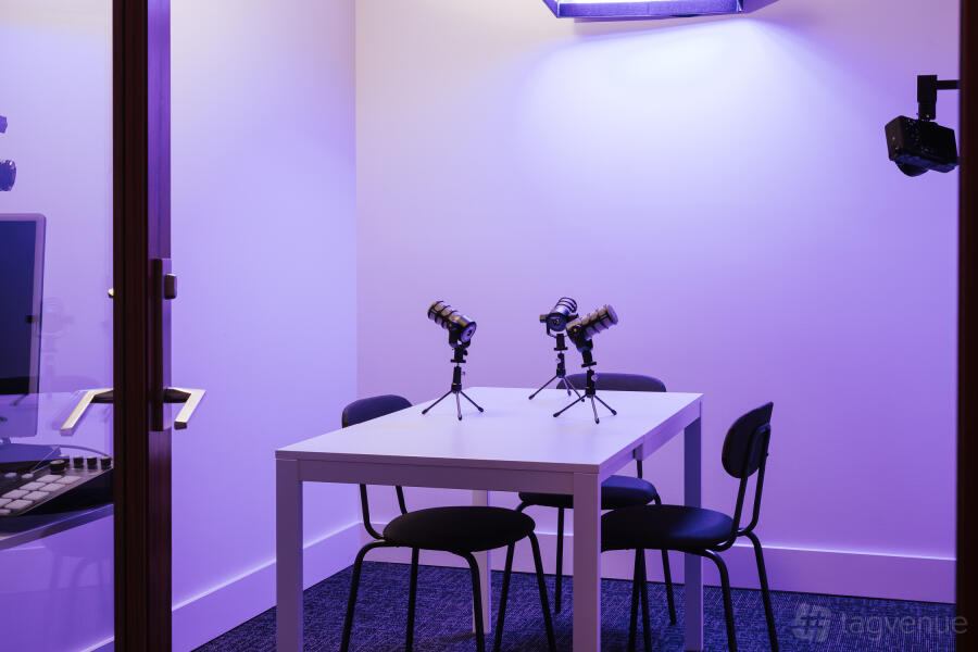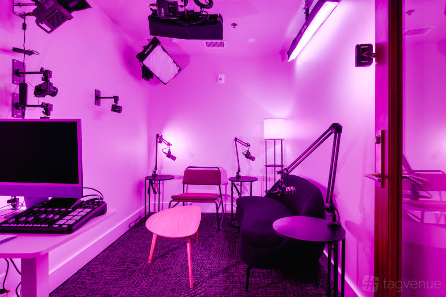 The Lightroom Athens is a unique media studio in Athens, GA, designed for podcasters, content creators, and storytellers. It offers two podcast studios, a comfortable lounge, and a professional photo/video studio with a cyclorama wall for high-quality shots.