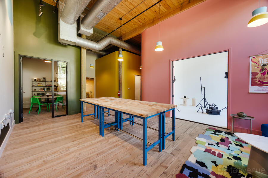 Our Photo & Video Cyclorama Studio offers high ceilings and versatile space, perfect for both natural light and complete blackout setups.