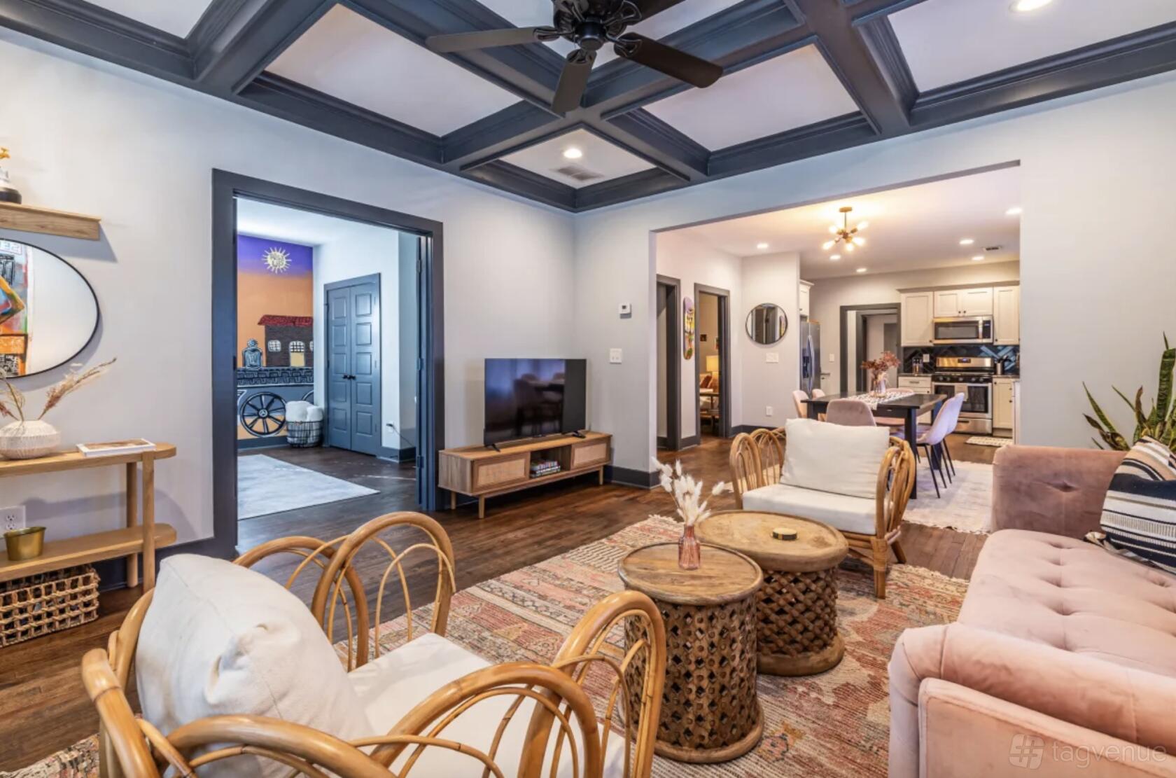 The home’s location in the heart of Atlanta makes it convenient for exploring the city’s top attractions, local boutiques, and dining hotspots. Enjoy the outdoor patio for fresh air or relax in the cozy living space. This venue provides everything you need for a seamless experience, including WiFi, a projector, and plenty of seating.
