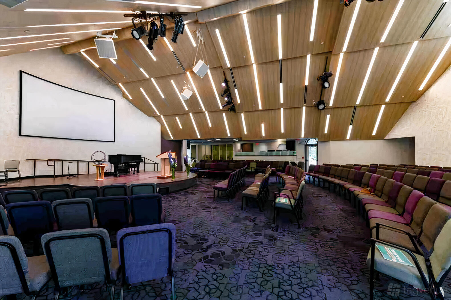 We are proud to offer a Sanctuary that goes beyond Sundays, featuring professional stage lighting, excellent performance acoustics, and a large projector screen, perfect for your concert, film screening, and more!