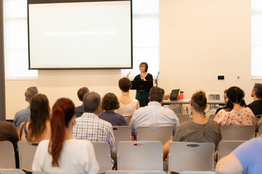 It also features an outside garden space for gatherings up to 30 seated guests, all-gender and private restrooms for your guests' comfort, free parking lot that is exclusive to our space (minus the charging stations), and building hosts to welcome you and make sure all your needs are met the day of your event! The space is perfect to host art shows, concerts, plays, book clubs, commitment ceremonies, celebrations of life, game nights, foreign language classes, retreats, and more!