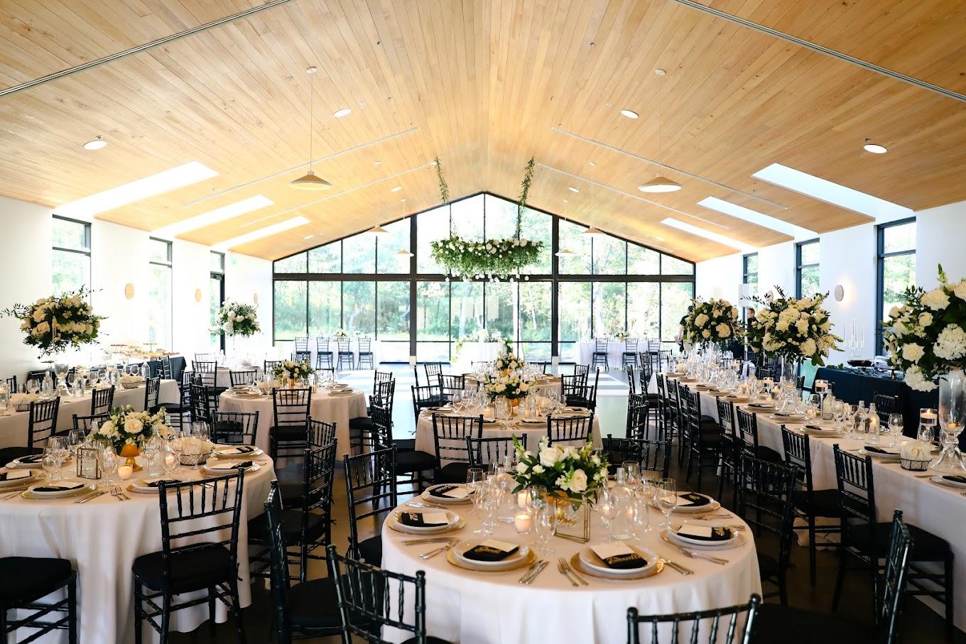 The estate features a newly constructed reception hall, accommodating up to 250 guests for an unforgettable evening, the floor-to-ceiling windows invite the natural beauty of the surroundings to create a captivating ambiance.