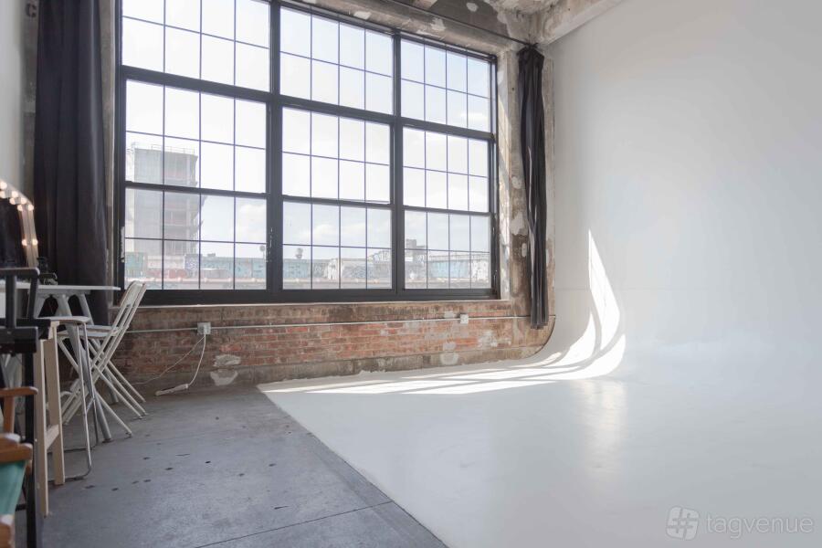 We offer a number of spaces as photo studios in loft buildings in Bushwick, Brooklyn. Our spaces include cycloramas as well as spaces with paper and muslin backdrops. All of our spaces have massive windows, high ceilings (12 ft to 16ft high) and are of 500 sq. ft to 1300 sq. ft in size. All of our spaces come with two flash strobes and an air trigger remote included. More gear is available as add-ons.