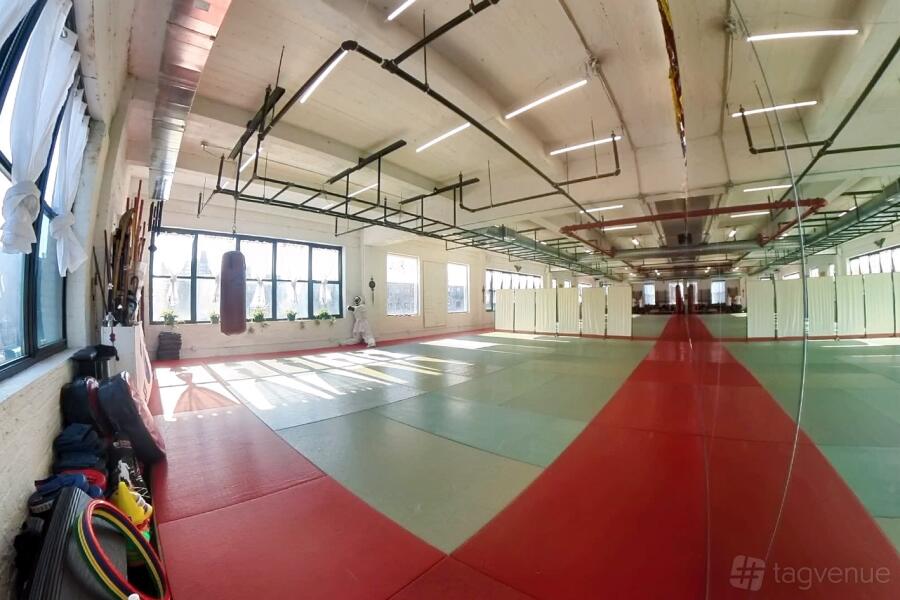 The World Martial Arts Center in Brooklyn, New York, offers a spacious and well-lit 10,000 square foot facility located on the 3rd floor, accessible by both stairs and elevator.