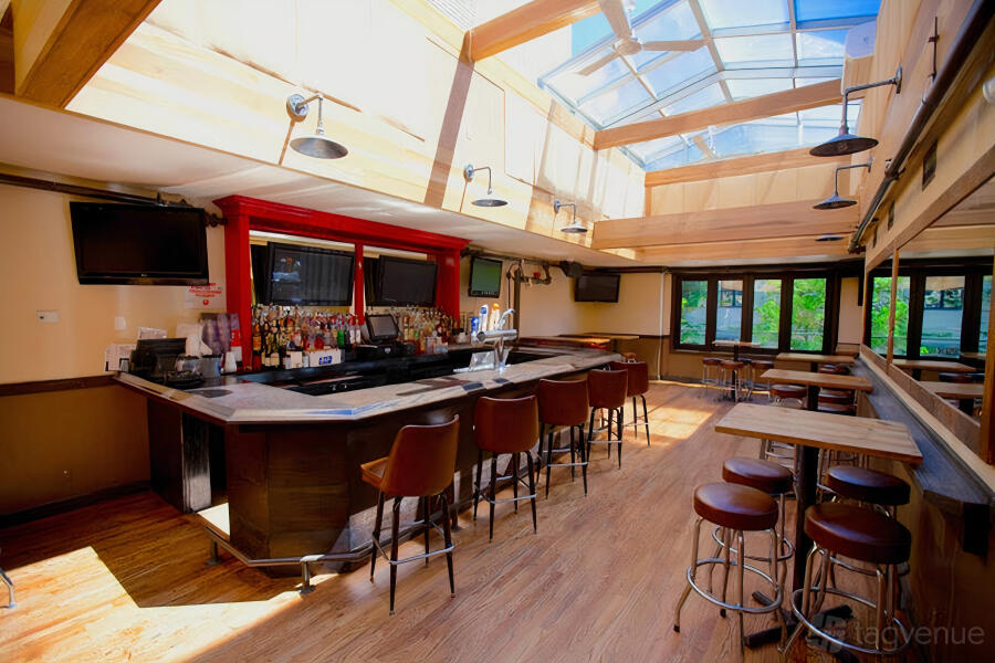 The Main Floor is an upscale tavern replete with hickory-slatted walls and floors, wood-beamed ceilings, a 38ft copper-plated bar, bucket-style stools, chocolate leather booths, 7 high-tops each with its own 24-inch flat screen, plus 13 wall-mounted screens. It can host parties of any size up to 200 people.