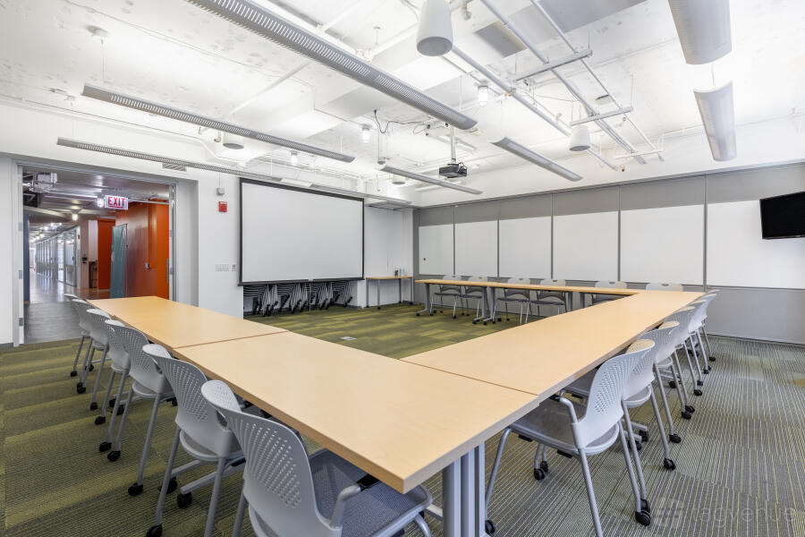 Babbage Boardroom is suited for small to mid-sized meetings, workshops, or training sessions. The space includes a 65” TV for Zoom meetings, wireless speakers and cameras, fast Wi-Fi, and whiteboard space. Tables are available for refreshments, catering, or materials, and operable windows with adjustable heating provide a comfortable environment.