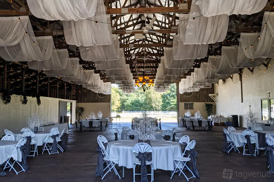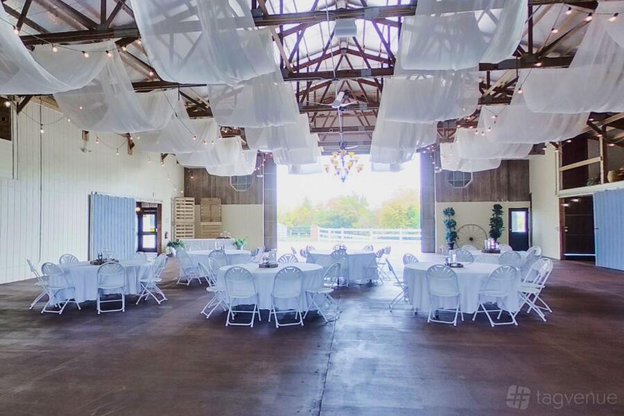Beautiful converted horse stable 10 k sq. ft. Up to 300 people. 3 k sq. ft. patio, bar, photo booth, bridal suite, lounge, 50 acres of gardens and pasture with ancient oaks, weeping willows, a koi pond and 24 horses onsite.