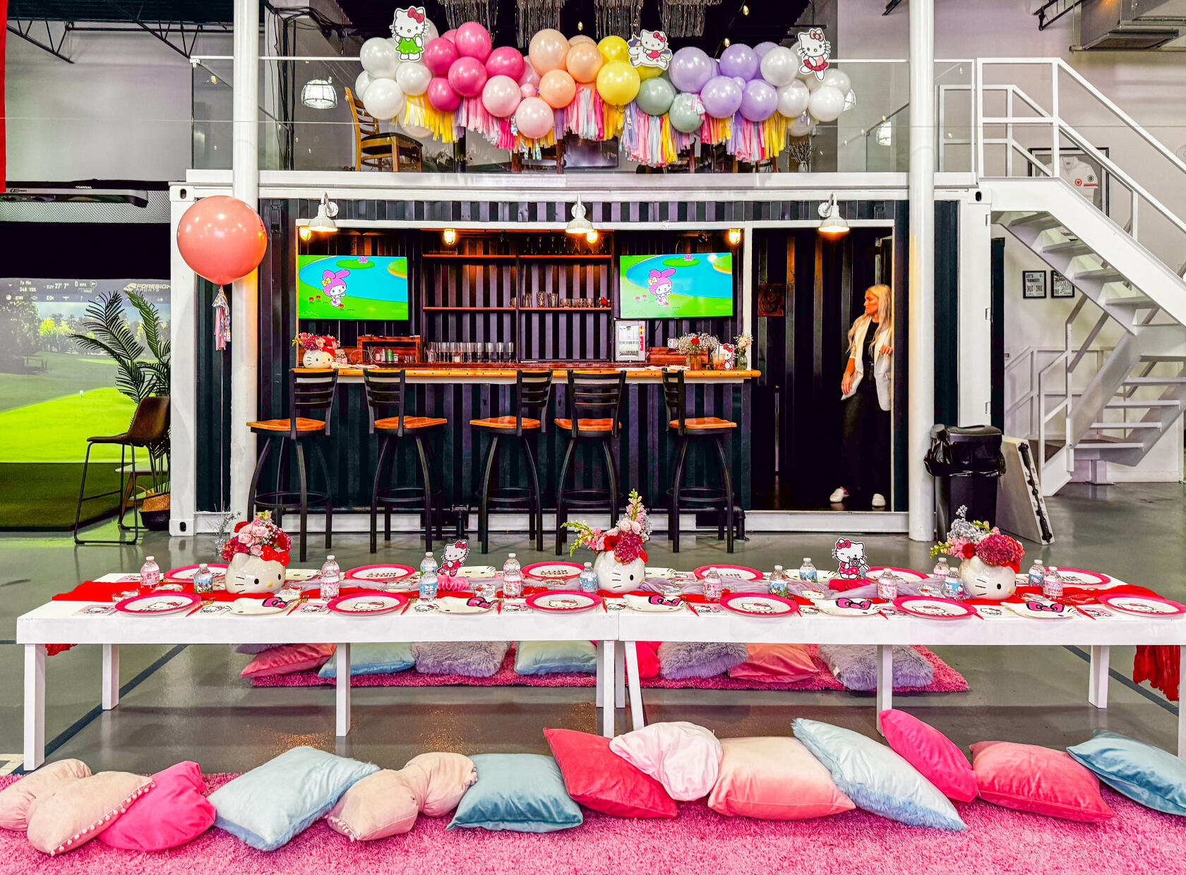 We have a 150" LED wall that can be used to watch games or projects accordingly—lighting can be dimmed and intimate or bright. The golf simulator is the highest grade out there and offers all of the top courses in the country. This space is excellent for birthday parties, wedding receptions, photoshoots, pop-ups, or corporate gatherings.