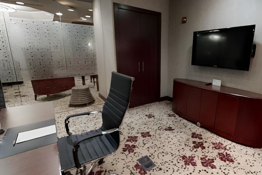 Designed with both comfort and style in mind, the chairs in this conference room are ergonomically crafted to provide maximum support during extended meetings, ensuring participants can stay focused and engaged.