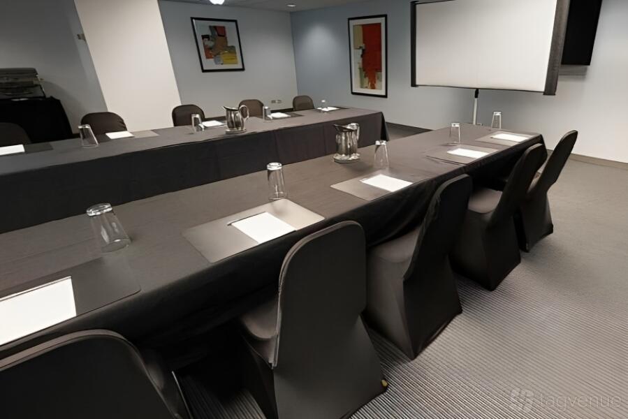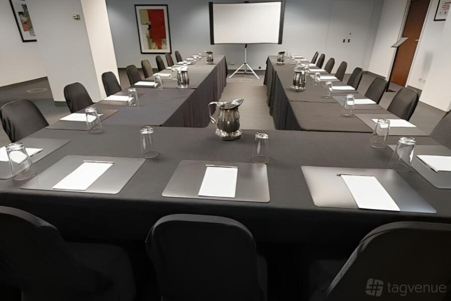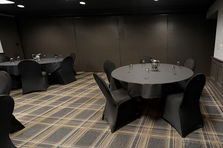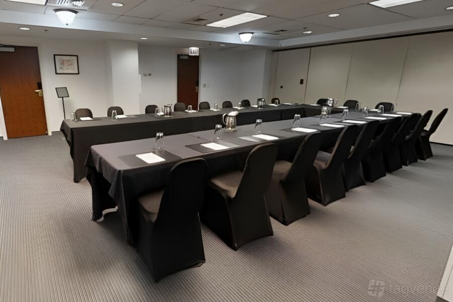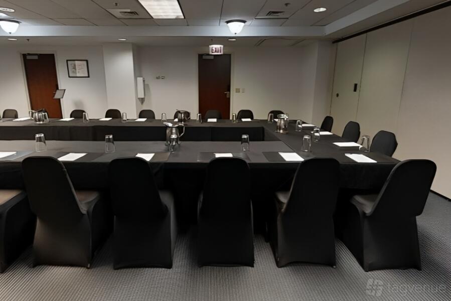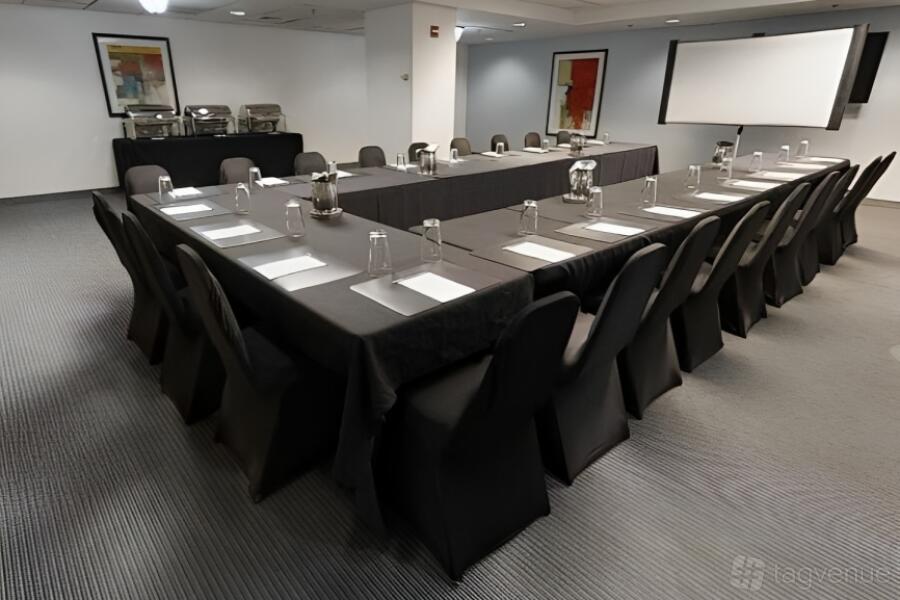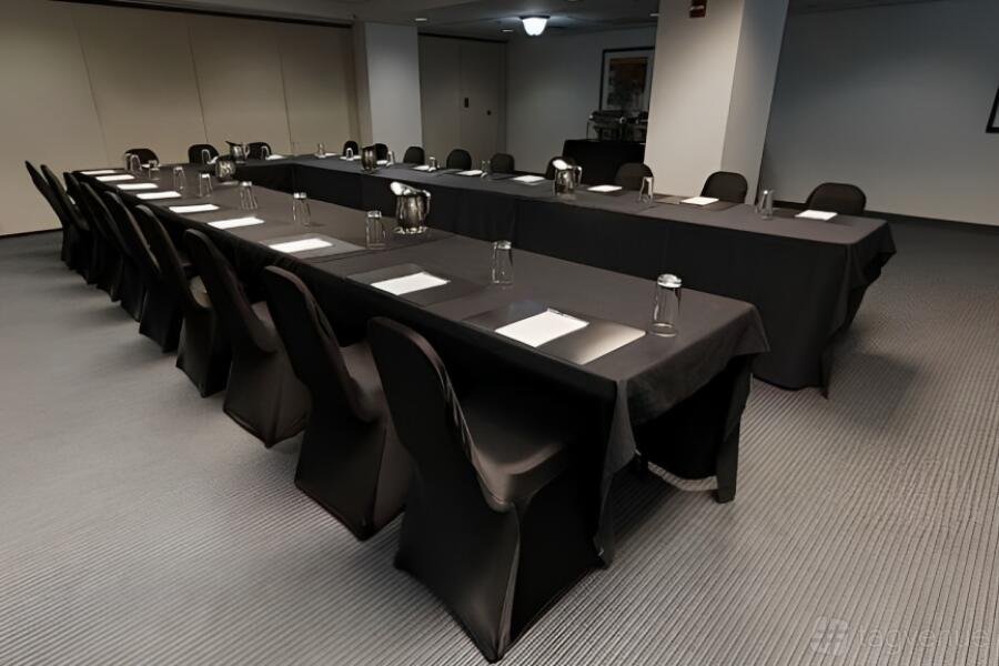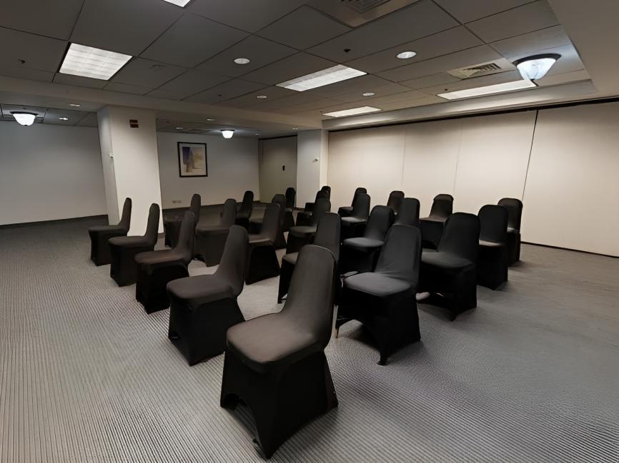 Step into the Clark Meeting Room, designed for up to 40 people, and experience the epitome of a perfect space for your professional gatherings. Its sleek and modern design exudes an air of sophistication that is sure to leave a lasting impression on your clients and colleagues alike. The room's generous layout allows for comfortable seating arrangements and easy movement during presentations or discussions.
