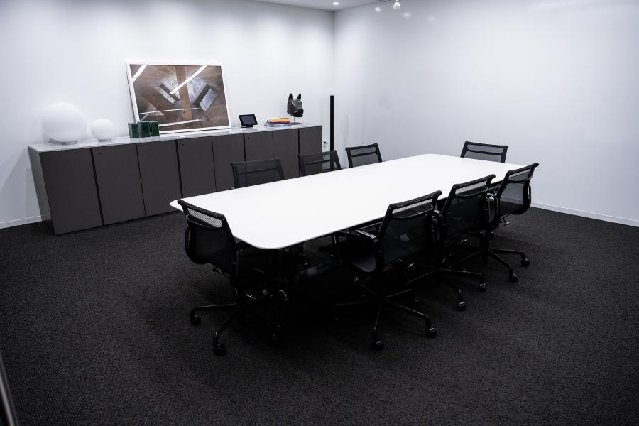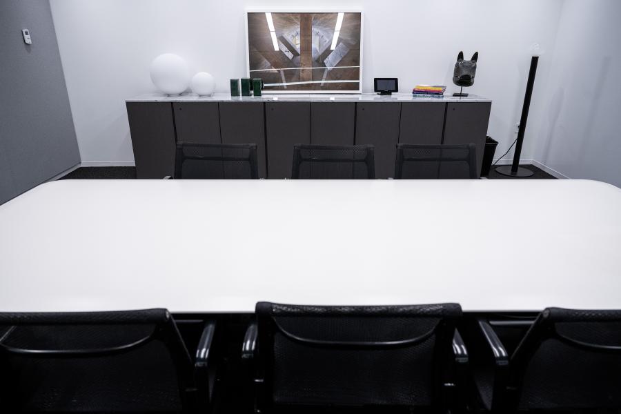 For added convenience, there's a credenza available, suitable for organizing materials or distributing food and beverages during your meetings. The room is designed to accommodate up to 20 individuals at the table, fostering a collaborative and inclusive environment.