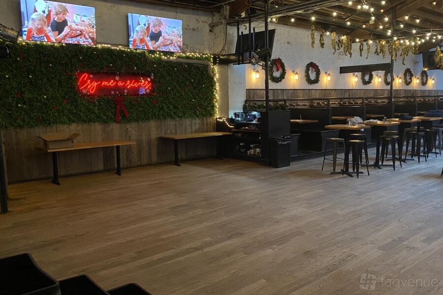 Join us at The River Kitchen and Bar! A modern sports bar with a patio, multiple rooms, TVs, DJ's & American bar food. We offer several drink and food packages and can customize for any special event!