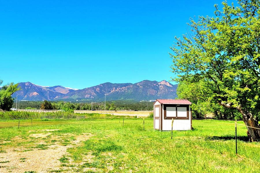 Our venue offers spectacular views of the Front Range which serve as a wonderful backdrop for your event! Our 27-acre property is cradled in between sweeping views of the mountains, towering oak trees, and a field of cattails. Our charming historic buildings offer a unique rustic experience and are reasonably priced which is difficult to find elsewhere in Colorado Springs.